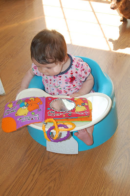Not much new this week...Katelyn has slept a little better the last two nights, hopefully it will continue. She still loves her toes and if put on her tummy will almost instantly roll herself over. She still hasn't rolled from her back to her tummy again, but is pretty close. Her favorite toys are still anything that crackles, that is after her fingers & toes. :)