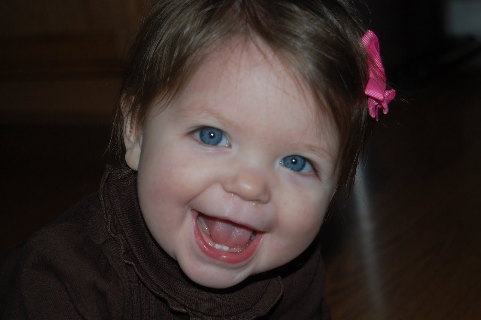 Katelyn is a very fast crawler and is often heard laughing/chuckling and seen grinning as she crawls across the floor. She's been enjoying all of her new toys from Christmas. She likes to tap her blocks together and loves to walk around behind her push toys. She loves music and hugs her seahorse toys that plays music that we listen to at night in her room.